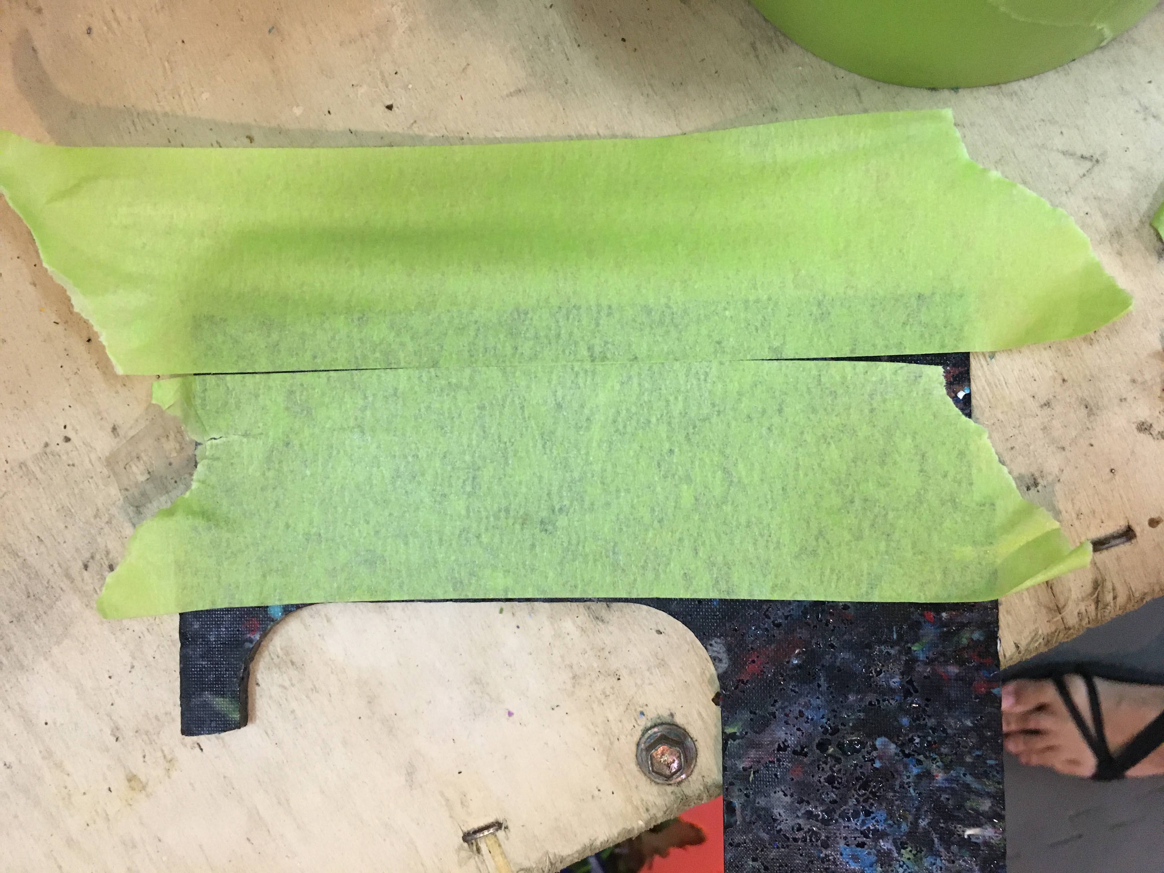 Mask the material before cutting with masking tape. This helps prevent burn marks and also is used for the spray painting process after the tape is etched off.