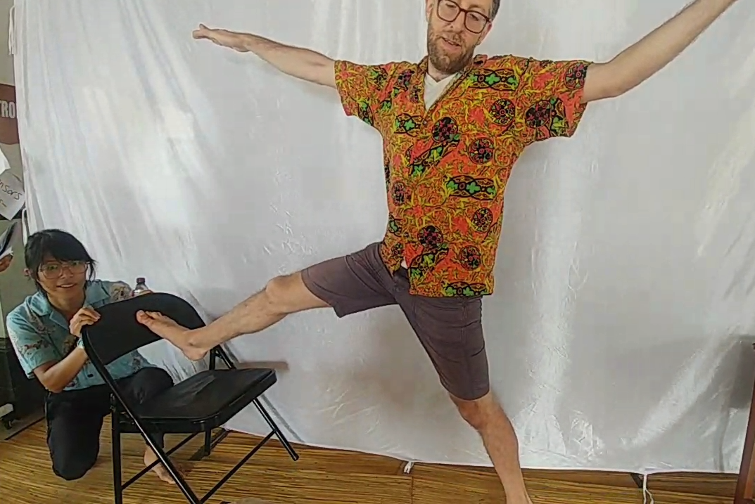 Players found more than one way to become the starfish. Legs were particularly difficult to pose correctly: some found props to put their legs up when the starfish had jaunty leg angles; others found that sitting in a chair helped free up their limbs to move more freely. Andy Quitmeyer suggested that the game could be played lying down, much like a starfish would be lying on the seafloor or on a rock. We decided that would be too easy for humans, though, and let gravity be a part of the challenge. Other extra challenges included trying to pose like the pincushion sea star or the 6-armed Luzon sea star.